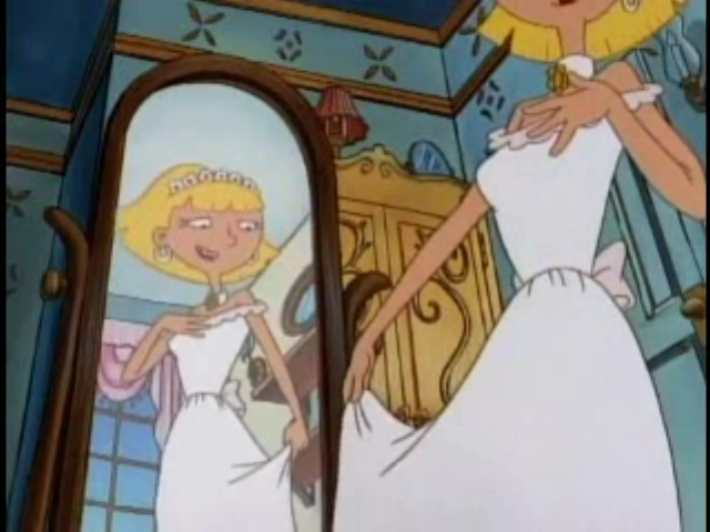 At dinner, as Doug and Olga are re-enacting a portion of William Shakespeare's Romeo and Juliet, Helga fantasizes about what would happen if they actually got married, living in a run down apartment with Doug lying about doing great things while Olga is miserable, Helga laughs at her little fantasy.